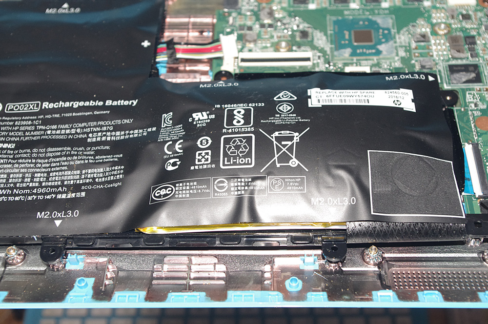 ノートPCの膨張したリチウムイオンバッテリー